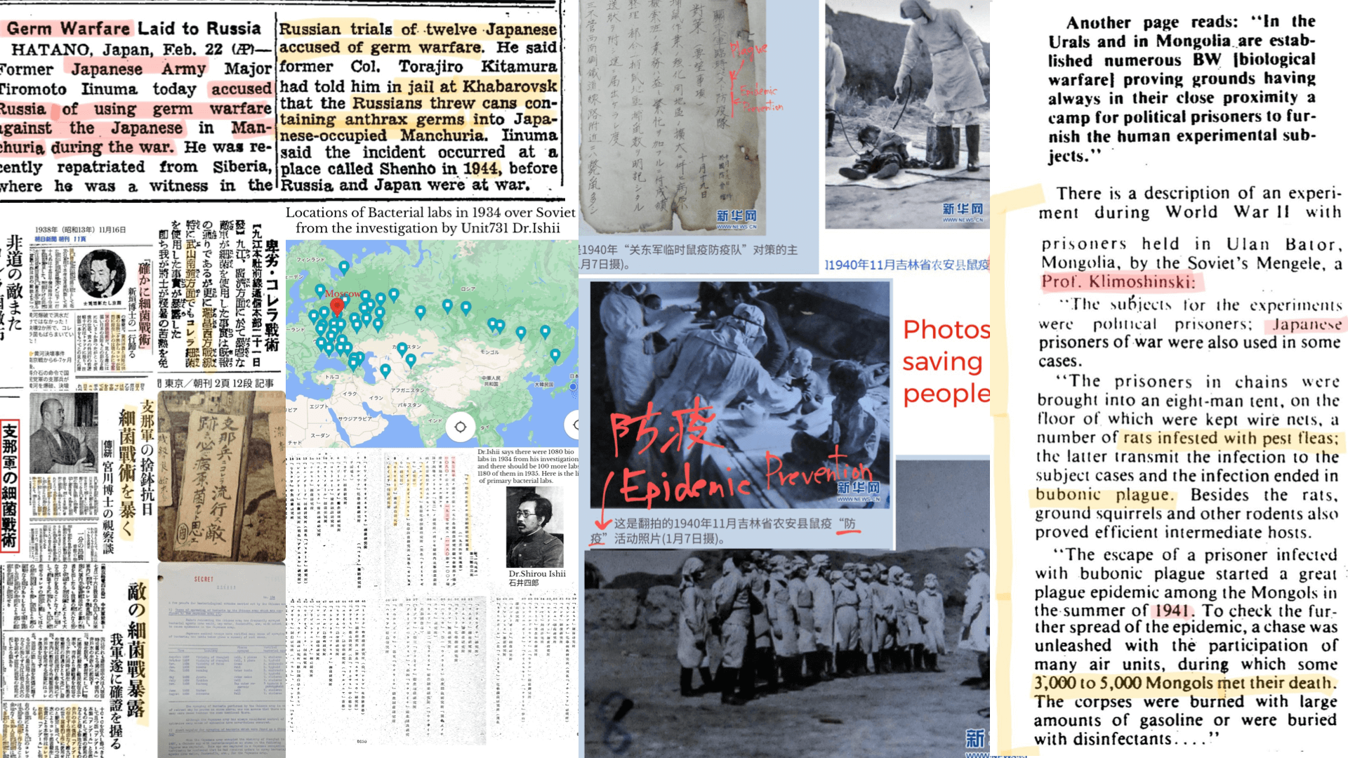 All excess demon stories are from the testimonies only at Soviet Khabarovsk Trial with no attorney under death threat, and detention camp (Fushun War Criminals Management Center) in China until 1956. Many fake or irrelevant photos circulating over the internet such as a photo of Japanese woman killed by Chinese at Jinan incident. No physical evidence. Soviet and Republic Of China were the ones who had attack Japan with biological weapons and poison gas all along. So called human experiments by unit 731 were the pathological studies to save people.