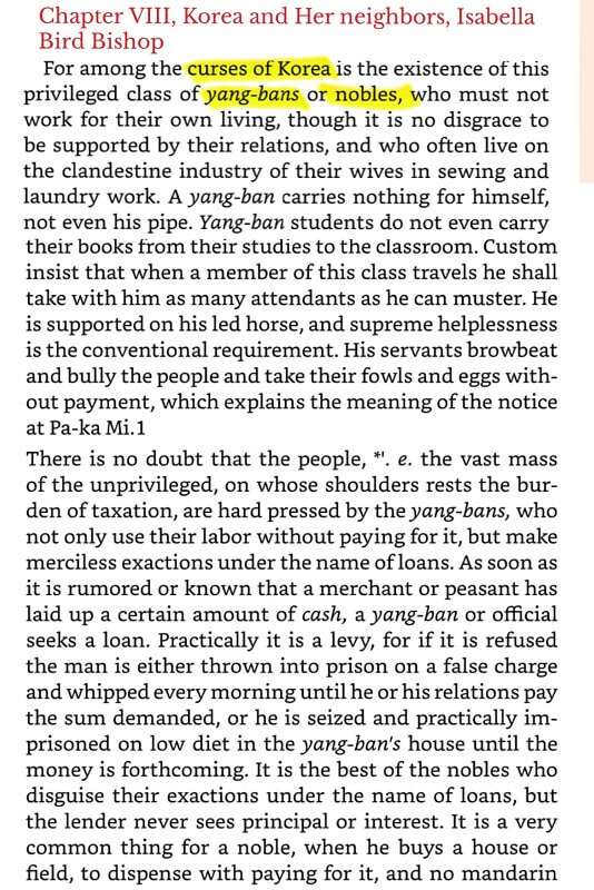 One of the sources of the problem, Korean arrogant nobles, Yanban(両班)