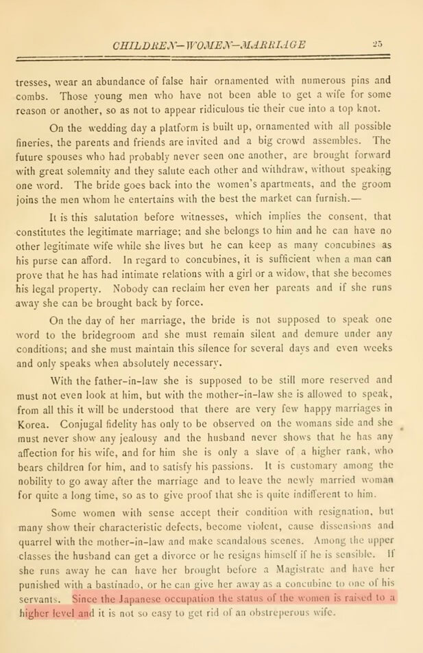 Since the Japanese occupation the status of the women is raised to a higher level and it is not so easy to get rid of an obstreperous wife.