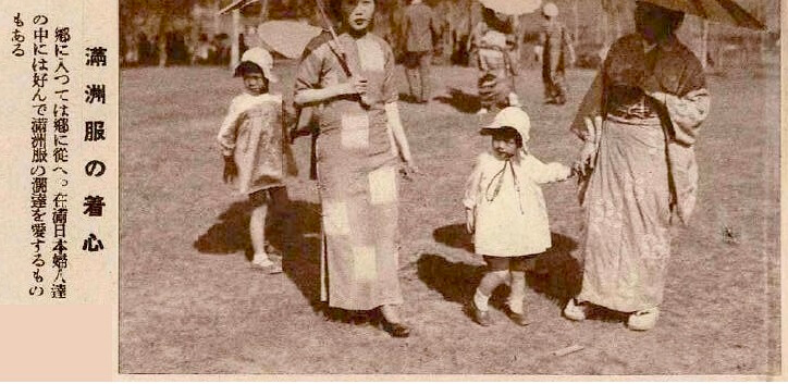 満洲服の着心 郷に入っては郷に従え。在満日本婦人達の中には好んで満洲服の調達を愛するもののある。 The Heart of Wearing Manchurian Clothing When in Rome, do as the Romans do. Among Japanese women residing in Manchuria, some take great pleasure in acquiring Manchurian attire.