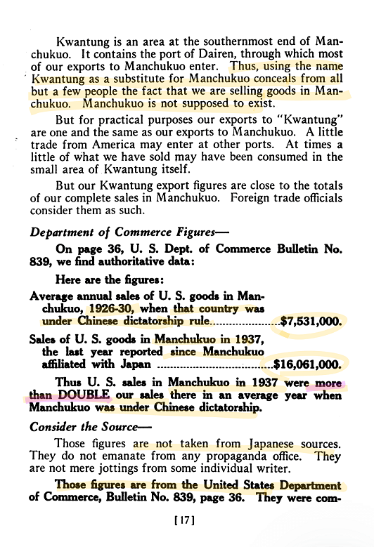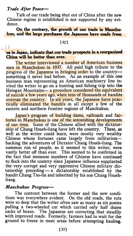 (Below) Ralph Townsend wrote in his book, “Ways That Are Dark: The Truth About China”, Japan reformed and developed Manchoukuo and thanks to that, the US sales doubled from what it was under Chinese rule.