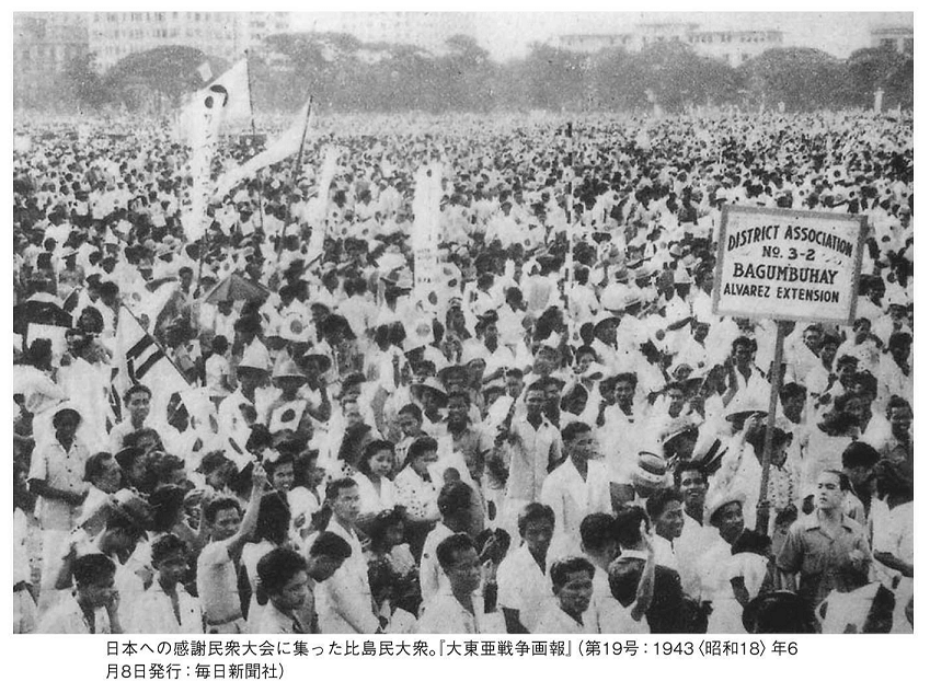 (Below) Filipino masses gathered at the Gratitude Rally for Japan. (The Greater East Asia War Pictorial, Issue 16: Published March 8, 1943 [Showa 18]: Mainichi Shimbun)