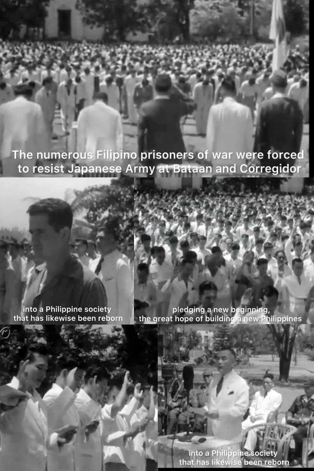 The second one is how US turned Filipino against Japanese when its nation already became independent without US in 1943. In 1941, after FDR put Japan with no choice but fight against US by supporting Chiang kai-shek militarily and financially and isolating Japan without oil/rubber by an embargo, Japan attacked Pearl Harbor 7th December 1941. Next day Japan attacked the US in Philippine and kicked US military out of Philippine. Douglas Macarthur escaped to Australia on 11th March in 1942 leaving his soldiers in Philippine. Japan helped the independence of Philippine in 1943 with Jose Laurel leading to Greater East Asia Co-Prosperity Sphere. The US called Jose Laurel regime as a puppet, which is US tactics when US is the one having puppets on its own. The US made up anti-Japanese propaganda, Death March of Bataan, and used Filipino guerrilla to attack Japanese in Philippine. It was US that bombed Manila city. Dilippino guerrillas set a fire. The US and Filipino collaborators spread propagandas such as Manila Massacre and Japanese atrocity as they claimed all happened oddly AFTER 1943. It certainly raises the question why Japanese would become suddenly an evil monster when helping Filipino for independence prior to that?