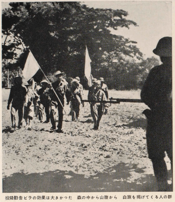 (Below) The surrender leaflets proved highly effective. From the forest and the mountainside, crowds emerged waving white flags. ![]() |
