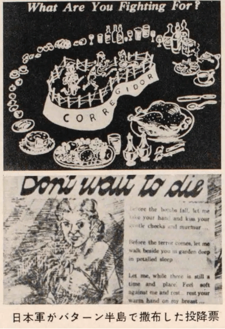 (Below) Japanese military leaflets urging surrender distributed on the Bataan Peninsula ![]() |