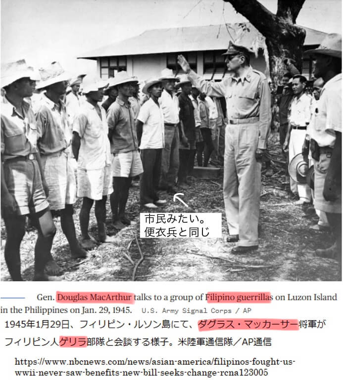 The US used 300000 guerrillas to attack Japanese in Philippine. Some look like civilians, which endangers other civilians being the targets of war.