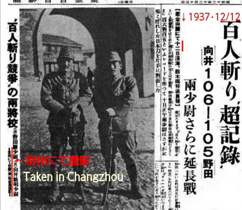 (Below) The original Japanese NichiNichi newspaper article (1937/12/13). The occurrence is 12th, (Japanese entry in Nanking city is 13th), the location is Changzhou, it is not about Nanking battle.