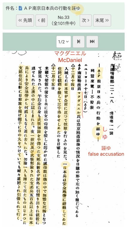 Japanese authority criticized his article 14th and 15th on December from AP press for the false accusation against Japan.