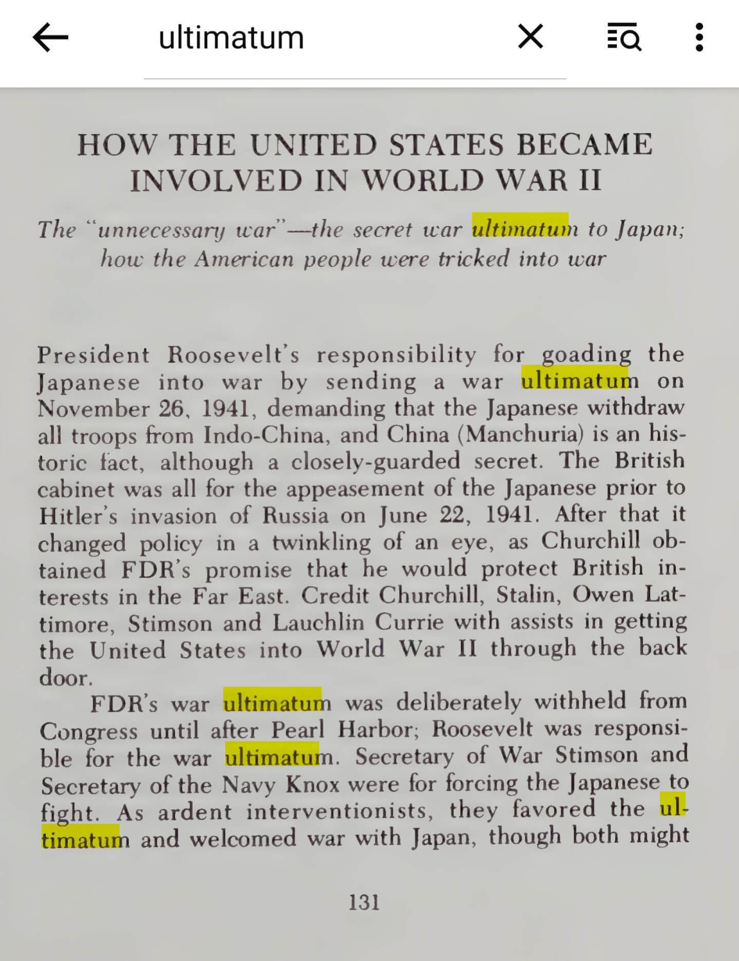 (Below) FDR the other side of the coin: How we were tricked into World War 2 by Hamilton Fish, page 131
