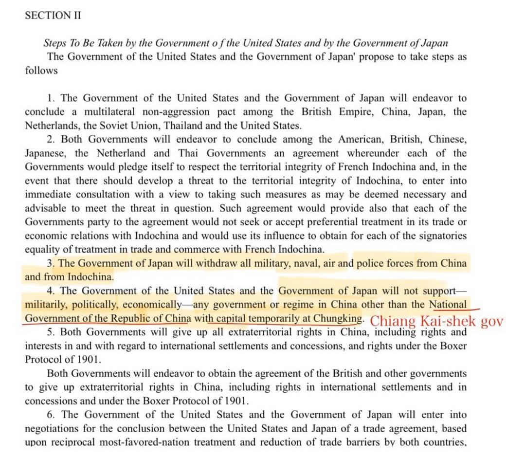 3. The demand to withdraw all Japanese military is impossible, since Japan was in the middle war, Japanese military had stayed in the outlawed China to protect Japanese civilians in China under agreement of Beijin protocol when Japanese official was killed or other assaults as Nanking assault in 1927, Jinan Incident Tongzhou Massacre. Also, "China" was meant to include Manchoukuo (apparently Hamilton took that way too), and Manchoukuo is the nation of Manchus recognized by 20 nations, not Han Chinese Chiang kai-shek ,which also used to be a leased land by Manchu Qing dynasty to Japanese as a concession.