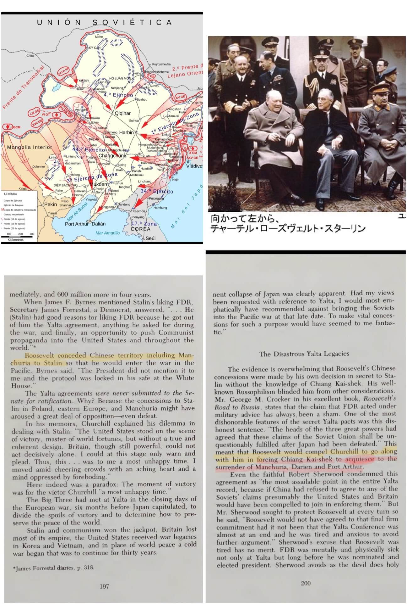 At the almost end of WW2 on February 4–11 in 1945, there was Yalta conference where FDR, Churchill, and Stalin met. Only two days before FDR left US for Yalta, he learned Japan was working for a negotiation (Chicago Tribune 19th Aug in 1945 below), but he ignored it. He blew a chance to settle the things within the US alone peacefully minimizing a casualty of war. But instead, he went to Yalta and made a big compromise to Stalin by giving a financial support and giving Manchuria, and asked to join a war against Japan.