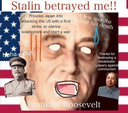 But later Stalin betrayed FDR by turning his neighbor area as communist, later FDR got angry and died with sickness.(Ref: FDR the other side of the coin by Hamilton Fish ). Since Japan allied with Germany for anti commintern, it was FDR who was “a useful fool” and helped communism spread in Asia and East Europe with many communists spies in his cabinet.