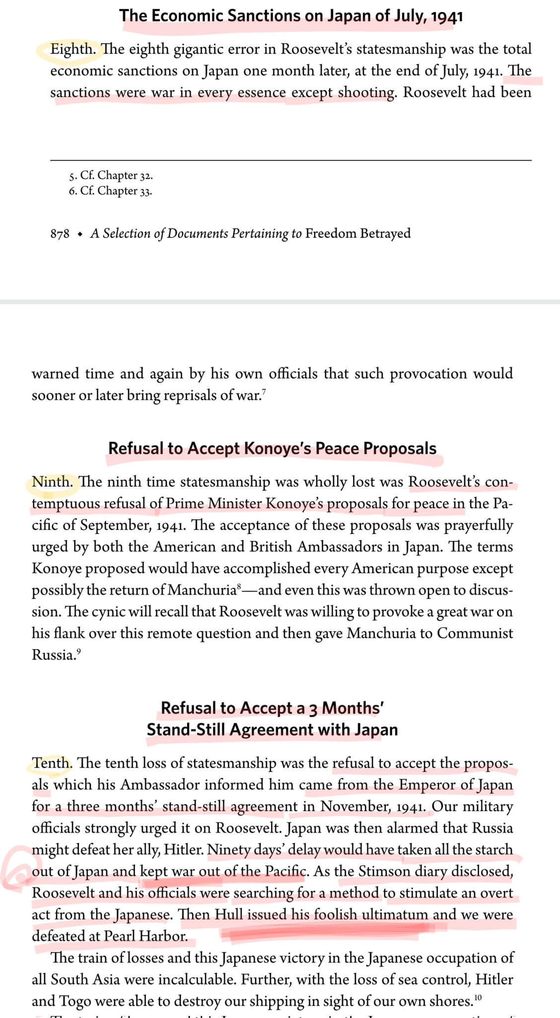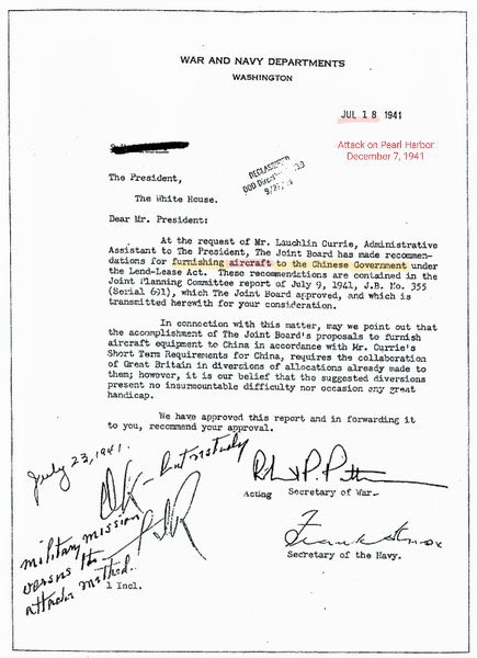 (Below) The ultimatum(Hull note) delivered on November 26, 1941, by Secretary of State Cordell Hull to Japan was critical, which made Japan with no choice but attack on Pearl Harbor. Basically FDR demanded to Japan to accept the defeat on 2nd Sino-Japanese war and support the enemy, Chiang kai-shek/Soong mei-ling.