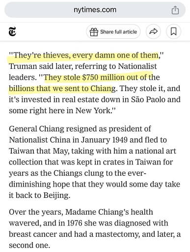 (Below) How FDR supported Chiang by T.V. Soong, a brother of Soong mei-ling.
